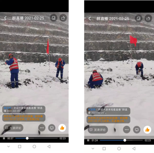 25日早,雪已經停了,并且氣溫徘徊在零度之上,雖然冷,但道路沒有結冰,炸藥運輸車也安全準時的送達到了現場。為了順利開展爆破作業,馬村分公司的同志們在劉黨經理的帶領下,吃過早飯后就立即組織進入礦山,開展工作。爆破工作嚴格按照規定及河南省公安廳的要求下進行,全部流程都進行釘釘直播,留存錄像。
