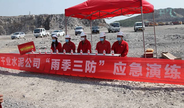 在進入4月份以來,全國各地降水明顯增加,焦作千業水泥公司與兗州中材馬村分公司,為預防夏季大量降水引發排土場滑坡及泥石流造成人員傷亡或財產損失,故雙方聯合組織職工開展了2020年雨季三防演練活動。演練由應急演練領導小組、事故現場制作組、搜救搶險組、警戒疏導組四個小組組成。