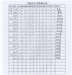 疫情就是命令,防控就是責(zé)任。兗州中材建設(shè)有限公司蘭陵分公司積極貫徹落實(shí)各級(jí)政府部門、公司有關(guān)新冠疫情防控工作的安排、部署,落實(shí)各項(xiàng)措施,構(gòu)筑牢固的疫情防控戰(zhàn)線,有效防控新型冠狀病毒疫情,保障分公司員工的身心健康,確保分公司新型冠狀病毒零感染者。