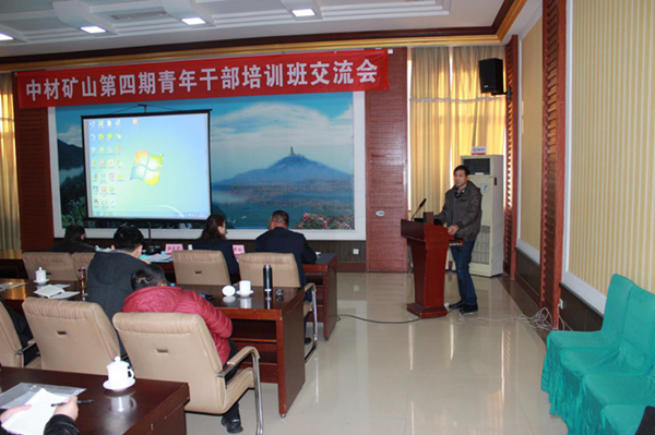 123800在駐地賓館會議室進行綠色礦山建設主題匯報,中材礦山行政總監李先軍主持會議