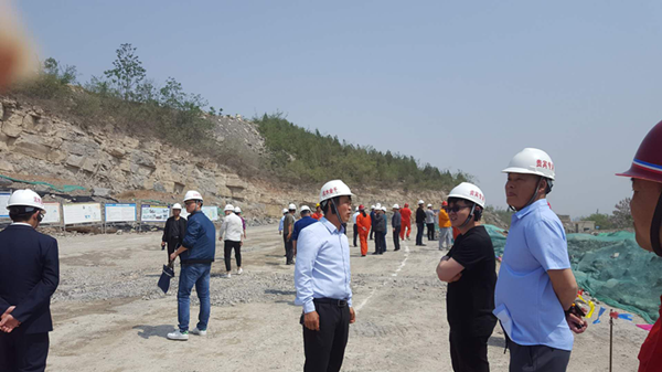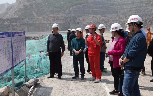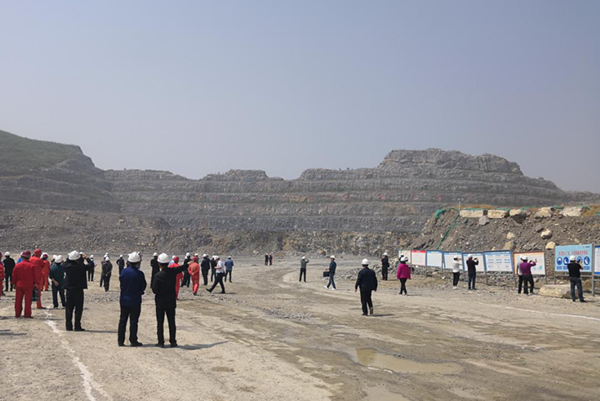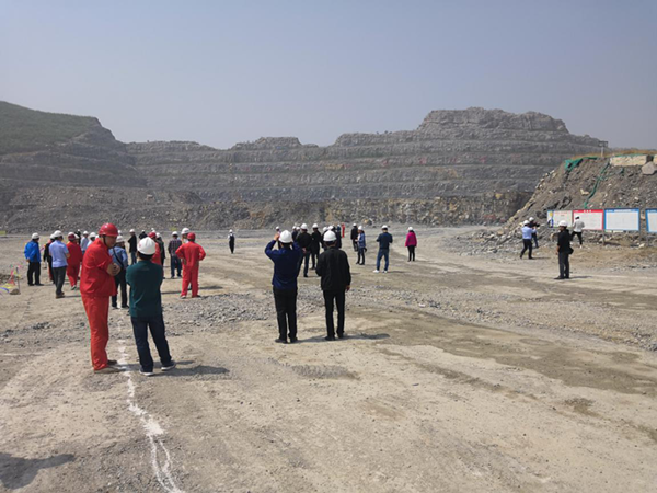 河南省露天礦山雙重預防體系建設示范企業研討會參會人員參觀千業水泥谷堆后水泥灰巖礦現場