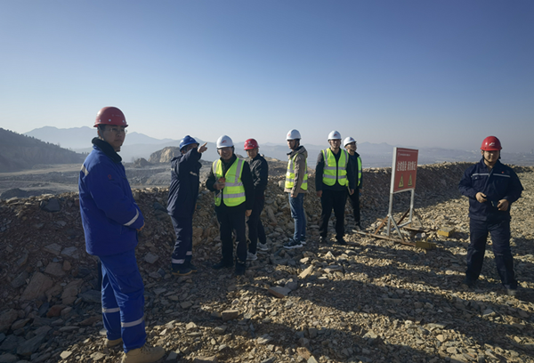 分公司人員陪同專家組到礦山進(jìn)行現(xiàn)場審查,為專家介紹礦山施工情況。