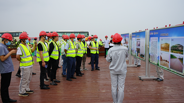 2021年9月18日,由中國水泥協(xié)會主辦,中材礦山建設有限公司、山水集團協(xié)辦的第十五屆水泥礦山年會暨中國水泥協(xié)會礦山專業(yè)委員會第五次代表大會參會代表蒞臨兗州中材有限公司平陰分公司青龍山礦區(qū)參觀。中材礦山胡總、兗州中材劉總、平陰山水總經(jīng)理丁宗新、黨委書記侯福存及相關領導接待了與會代表。  參觀團先后參觀了平陰山水公司智能化控制室、數(shù)字化礦山控制室,并到礦山現(xiàn)場進行實地參觀。  我方代表結合現(xiàn)場對我公司的‘六個標準化’進行了細致的講解,參觀團詳細了解并觀看了各平臺的開采情況、路王漿道路運行情況、噴淋抑塵系統(tǒng)的抑塵效果、預裂邊坡爆破后效果以及GPS智能卡車調(diào)度系統(tǒng)。  通過實地參觀和交流,參會代表對平陰公司數(shù)字化礦山+綠色礦山有了更直觀的了解,對數(shù)字化礦山開采的先進性、可靠性以及對綠色礦山的建設給予了肯定。