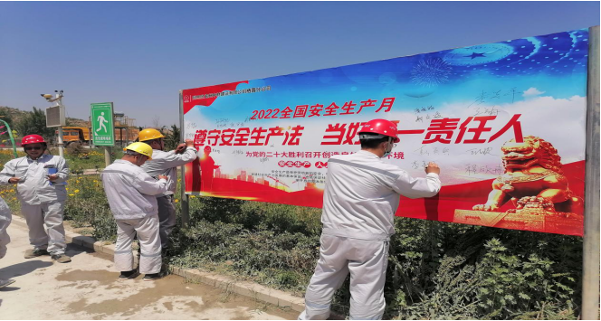 各分公司組織全體職工宣誓:“我們肩負自身安全生產職責,嚴格遵守安全生產規章制度和操作規程,主動接受安全教育培訓,積極參與隱患排查治理和應急處置,堅決杜絕“三違行為”,努力做到“四不傷害”,營造安全、健康、和諧的工作環境。我將與公司一路同行,為達成“零事故”、“零傷亡”、“零職業病”目標而不懈努力”。