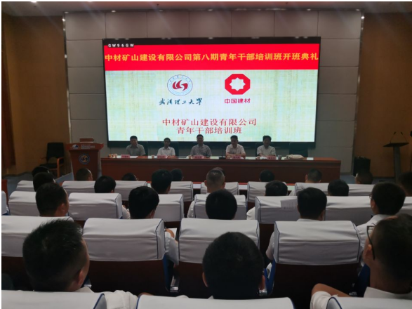 2022年7月6日上午,中材礦山建設有限公司第八期青年干部培訓班開班典禮在武漢理工大學資環學院開幕,中材礦山建設有限公司、武漢理工大學資環學院有關領導、老師及全體學員參加本次開幕式活動。 開幕式由武漢理工大學資環學院采礦系主任葉海旺教授主持,中材礦山建設有限公司總經理張漢武、行政總監李先軍,武漢理工大學資環學院黨委書記楊文東、培訓負責人王玉杰教授出席開班典禮。