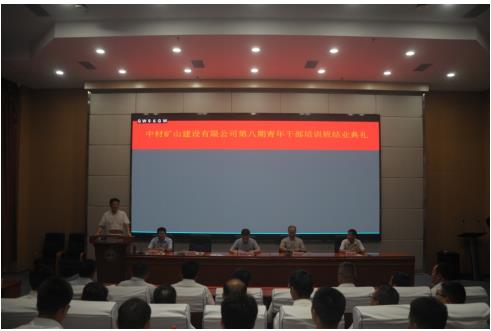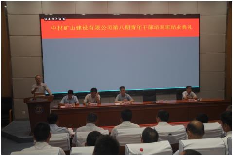 8月10日,中材礦山建設有限公司第八期青年干部培訓班結業典禮在武漢理工大學資環學院舉行,中材礦山總經理張漢武、行政總監李先軍,資環學院黨委書記楊文東等領導、老師出席,資源工程系主任葉海旺教授主持。培訓班負責人王玉杰教授對培訓班進行了總結,中材礦山總經理張漢武和資環學院黨委書記楊文東領導分別講話,班長王國華代表全體學員發言。