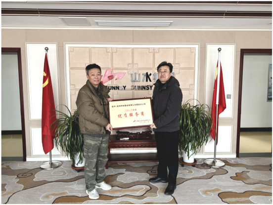12月25日,煙臺山水水泥有限公司總經理孫明泉向兗州中材建設有限公司棲霞分公司頒發了“優質服務商”榮譽獎牌,這一榮譽肯定了棲霞分公司本年度高效完成了生產任務。