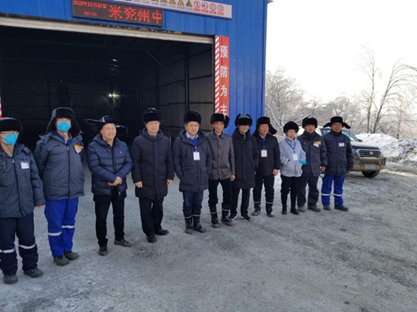 目前,舒蘭分公司進入冬季施工階段,當地冰凍期長,冬季氣溫極低,降雪較多,對礦山生產存在較大影響。現場施工條件惡劣,應做好現場施工人員的防寒防凍和運輸車輛的防滑、保養工作,加強冬季施工安全培訓。現場工作面情況:(1)采場正常施工,運輸道路平整,部分基建平臺已見礦并堆存,平臺推進速度快;(2)隧道進出口施工圍巖堅硬,前端圍巖較差部位做了支護,洞內通風條件良好,冬季施工準備及措施完善,隧道日進尺約11m;(3)排土場道路及卸料平臺平坦寬闊,專人指揮卸車。