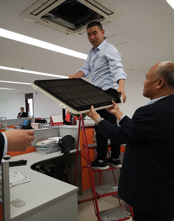 為扎實開展“不忘初心 牢記使命”主題教育,充分發揮黨先鋒模范作用,11月11日,濟南支部開展 “不忘初心 牢記使命”主題教育黨員志愿服務活動。支部書記高金軒同志帶領黨員全面清洗辦公區空調過濾網。經過一個夏天的使用,空調進風口格柵和過濾網已經布滿灰塵,同志們不怕臟不怕累,挨個拆卸、清洗、擦拭、晾曬,將每個過濾網清洗的潔凈如新。