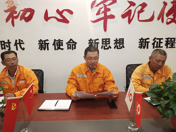 會上,劉經理首先帶領全體員工認真學習《在中材礦山建設有限公司開展“不忘初心,牢記使命”主題教育部署會上的講話》。全體員工分別針對“不忘初心,牢記使命”主題教育活動展開發言討論。最后,根據《在中材礦山建設有限公司開展“不忘初心,牢記使命”主題教育部署會上的講話》會議精神,劉經理呼吁全體員工要積極努力地向黨靠攏,今后更加緊密團結在以習近平同志為核心的黨中央周圍,高舉習近平新時代中國特色社會主義思想偉大旗幟,扎實做好“不忘初心,牢記使命”主題教育工作,為全面完成集團和股份公司下達的各項經濟指標而努力奮斗,以優異的成績迎接新中國成立70周年