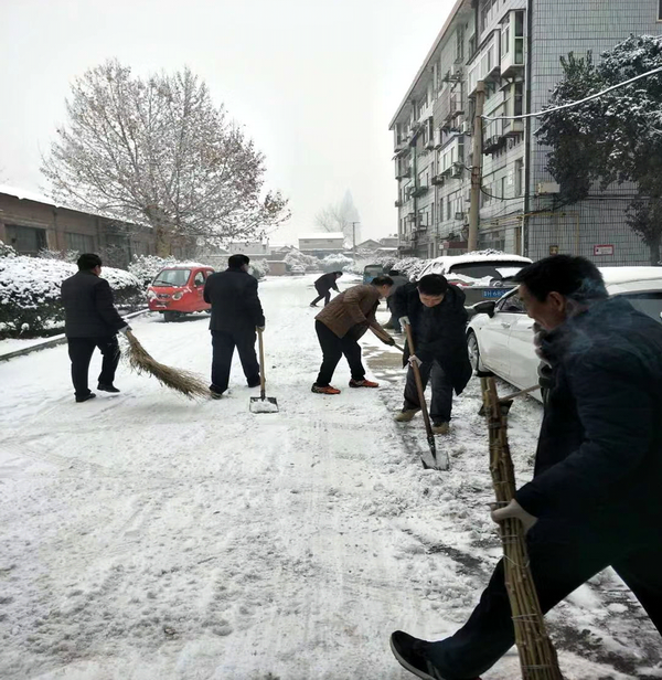 然而大雪的降臨也給大家的出行帶來諸多不便,公司基地大門口、辦公樓前、生活區的道路都被皚皚白雪覆蓋,尤其是給老人和孩子的出行帶來的不便尤甚。上午上班時間還不到,兗州機關黨支部書記李增光第一個拿起了掃帚,來到辦公樓前掃起了雪,行動就是無聲的號召,公司機關的干部職工都不約而同的拿起掃帚鐵锨,加入到掃雪的大軍。鐵锨和地面的碰擊聲、掃帚清掃雪花的刷刷聲,不一會兒辦公樓前的積雪已蹤影全無,然而大家并沒有停住腳步,繼續向大院深處走去,球場、院門、居民樓前......所到之處,雪沒了,路干凈了,路過的人們紛紛投來贊許的目光,掛滿枝頭的冰凌隨風婆娑起舞,似乎也在點頭稱贊,大家的心中更是無比的欣慰,雖然臉紅了、出汗了,但累并快樂著。