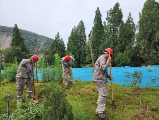 本次活動共覆土千余方,種植樹苗百余顆。河南片區黨支部堅持把貫徹習近平總書記生態文明思想放在首要位置,認真執行公司高質量轉型發展綠色規劃,把“綠水青山就是金山銀山”理念落實到行動上,對礦區環境進行精準化高質量復綠,給職工創造了良好的工作生活環境,為公司高質量發展增添了更綠的底色。