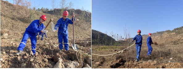 春風催新綠,植樹正當時。上午9時,植樹現場全員帶上工具直奔目的地,大家分工協作,揮鍬挖坑、扶苗栽苗、澆水培土,個個干勁十足,各個環節銜接有序,配合默契,勞動現場處處是忙碌的身影,一派春意盎然、生機勃勃的景象,真正是勁往一處使、汗往一處流,充分發揚了團結、互助、友愛的精神。