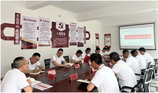 首先,西南片區黨支部召開支部黨員大會,集中學習《中國共產黨紀律處分條例(2024年)》新修訂版,就修訂的主要內容和鮮明特征、對推動全面從嚴治黨的意義、抓好貫徹落實等方面做出詳細解讀,并強調在項目經營中,對規章制度和廉潔紀律要嚴格遵守,著重提出對“高壓線”、“紅線”問題不可觸犯。