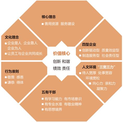 中國建材集團認真履行作為中央企業應擔負的政治責任、社會責任和經濟責任,崇尚“創新、績效、和諧、責任”的核心價值觀,倡導“敬畏、感恩、謙恭、得體”的行為準則,本著“企業是人、企業靠人、企業為人”的原則,積極營造待人寬厚、處事寬容、環境寬松和向心力、親和力、凝聚力“三寬三力”的人文環境,把實現人的幸福、人的價值作為企業發展的重要目標和根本追求,努力追求“讓員工與企業共同成長”。